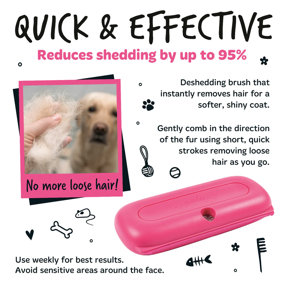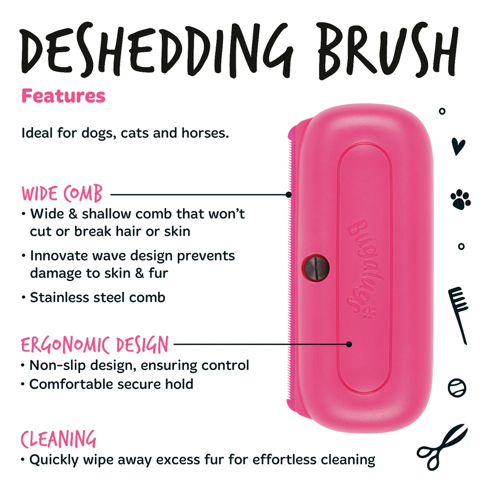 Zeg vaarwel tegen losse haren en hallo tegen een gezonde, glanzende vacht met de Bugalugs Deshedding Brush – de ultieme borstel voor honden, katten én paarden. Deze veelzijdige borstel verwijdert eenvoudig losse haren, vuil en stof, waardoor hij onmisbaar is in de verzorgingsroutine van iedere huisdiereigenaar.