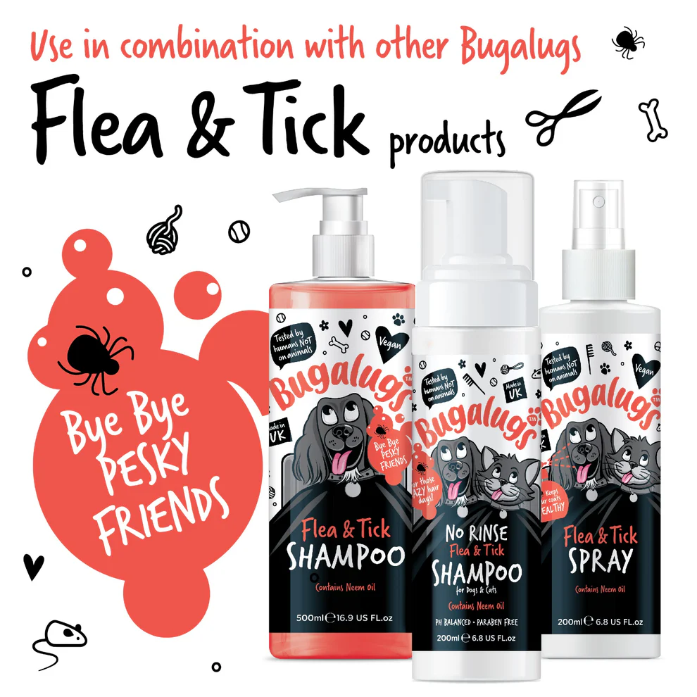 Voor het beste resultaat combineer je deze No-Rinse verzorging met onze Bugalugs Flea & Tick Dog Shampoo en Antiseptic Flea & Tick Bite Relief Spray voor een complete bescherming en optimaal comfort voor je huisdier.